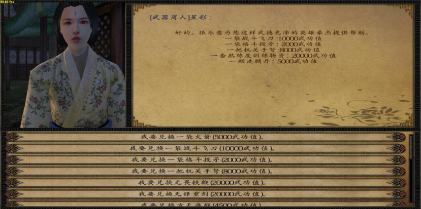 玩家亲手击败敌人,可以积累武功值。武功值是个人勇武的象征,可以从成都武器商人那里换取一些奇门武器或者自建兵训练物资。从岳云那里换取背嵬虎贲的时候,也用得到武功值。